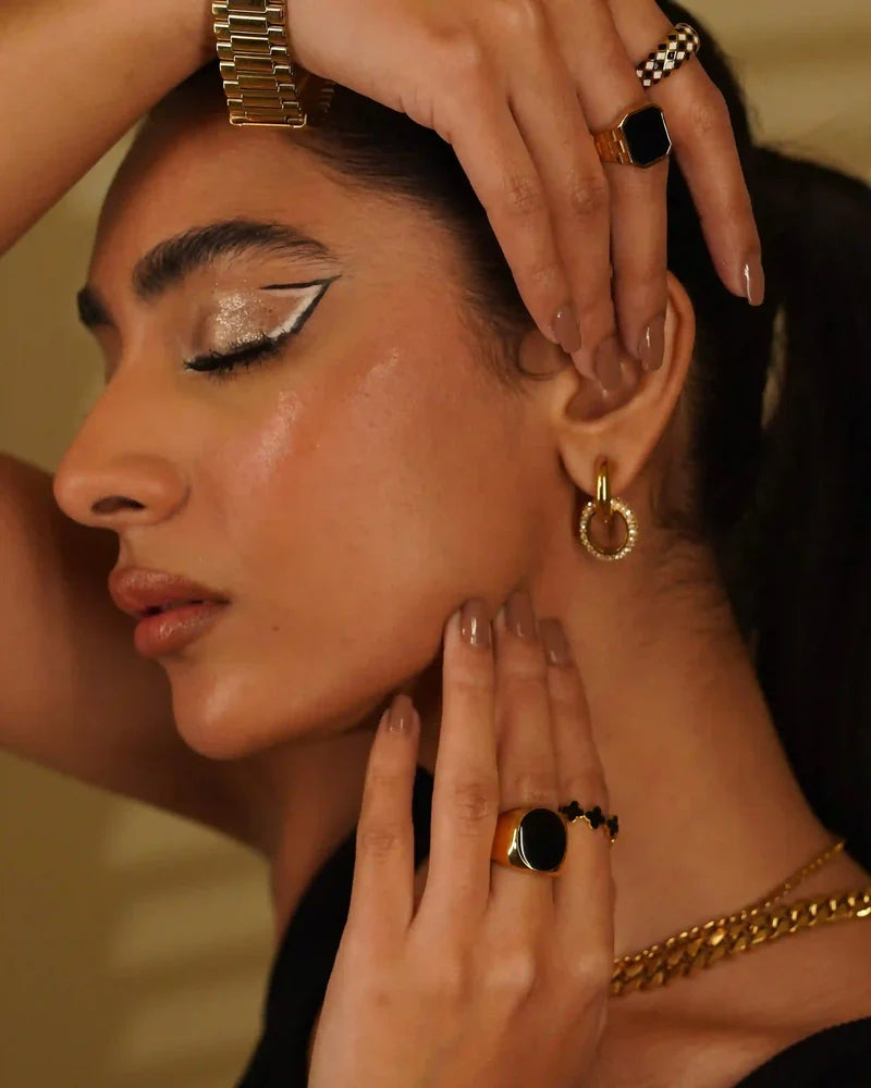 Premium 18K gold-polish stainless steel 316L, waterproof & anti-tarnish.
